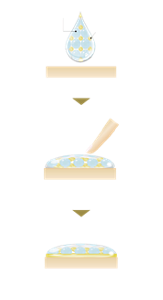 Et friskt og flytende produkt som fukter huden. Blir gradvis forvandlet til en silkemyk konsistens som gjør huden glatt, fast og strålende.